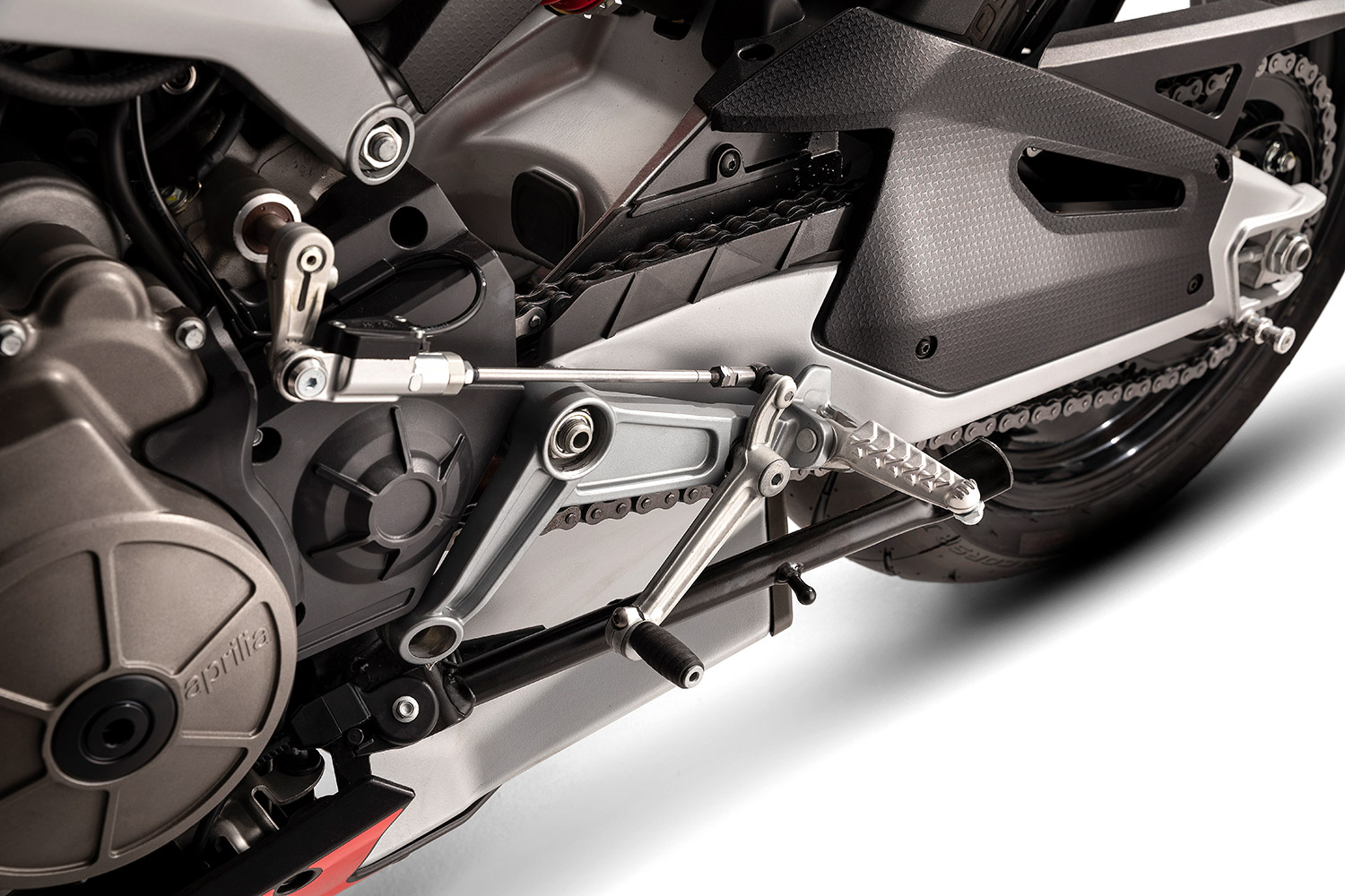 Absolute Hightech-Komponenten und Highend-Elektronik. Ein Kraftpaket, das die Ingenieure von Aprilia Racing von A bis Z kompromisslos für ultraschnelle Rundenzeiten auf Sieg getrimmt haben. Der Motor mit der Power von sagenhaften 159,5 kW / 217 PS ist eingebettet in ein Fahrwerk der absoluten Extraklasse und bietet ein sagenhaftes Drehmoment.